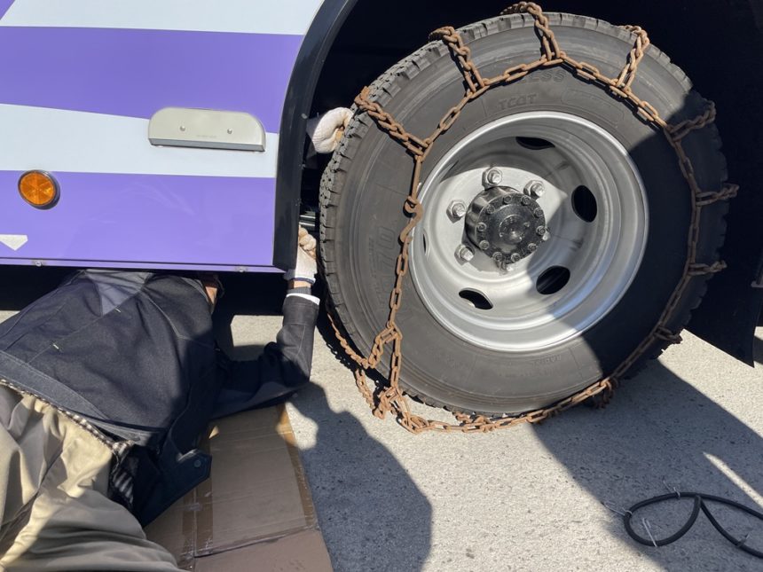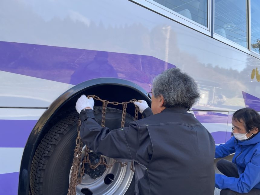 お知らせ ホーム > お知らせ > タイヤチェーン脱着訓練を実施 タイヤチェーン脱着訓練を実施 2025.12.11 弊社では11月の月例乗務員研修において、本格的な雪や路面凍結シーズンを前にタイヤチェーンの点検と脱着訓練を実施しました。 乗車されたお客様の安全確保はもとより、歩行者や他車に迷惑をかけない公共道路の安全な使用のため参加した乗務員は確実な装着方法を確認しました。 « 前の記事 次の記事 » Category 業務案内